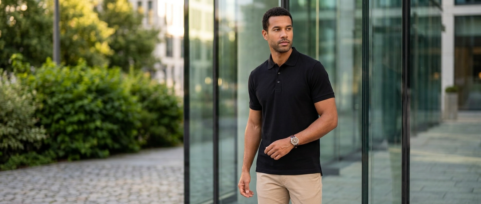 Elegância casual em sua forma mais versátil. Produzida com98% algodão e 2% elastano, sua malha piquet premium oferece toque macio, estrutura firme e elasticidade sutil